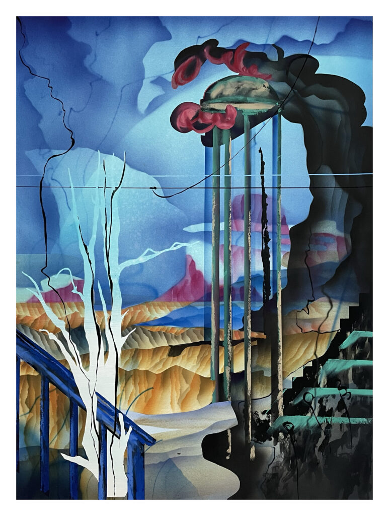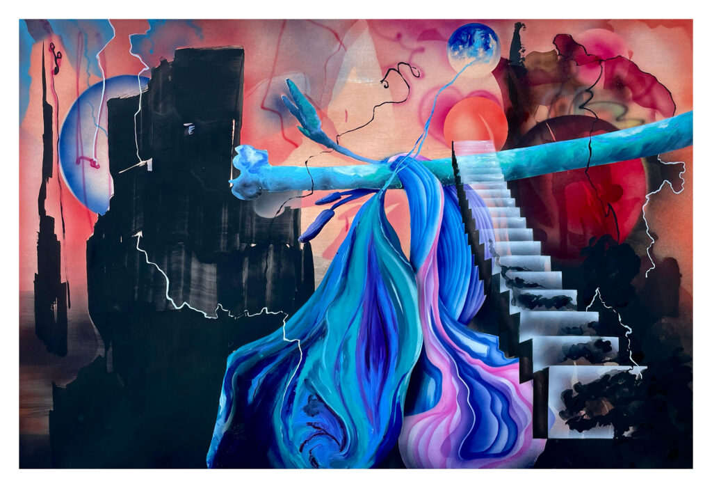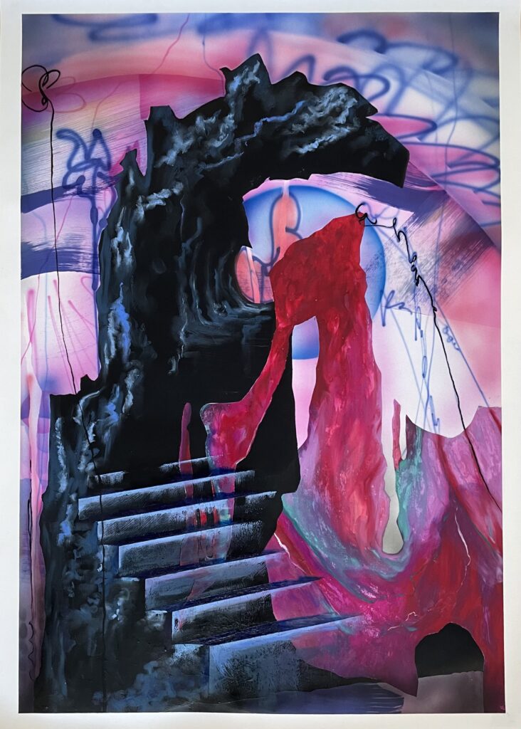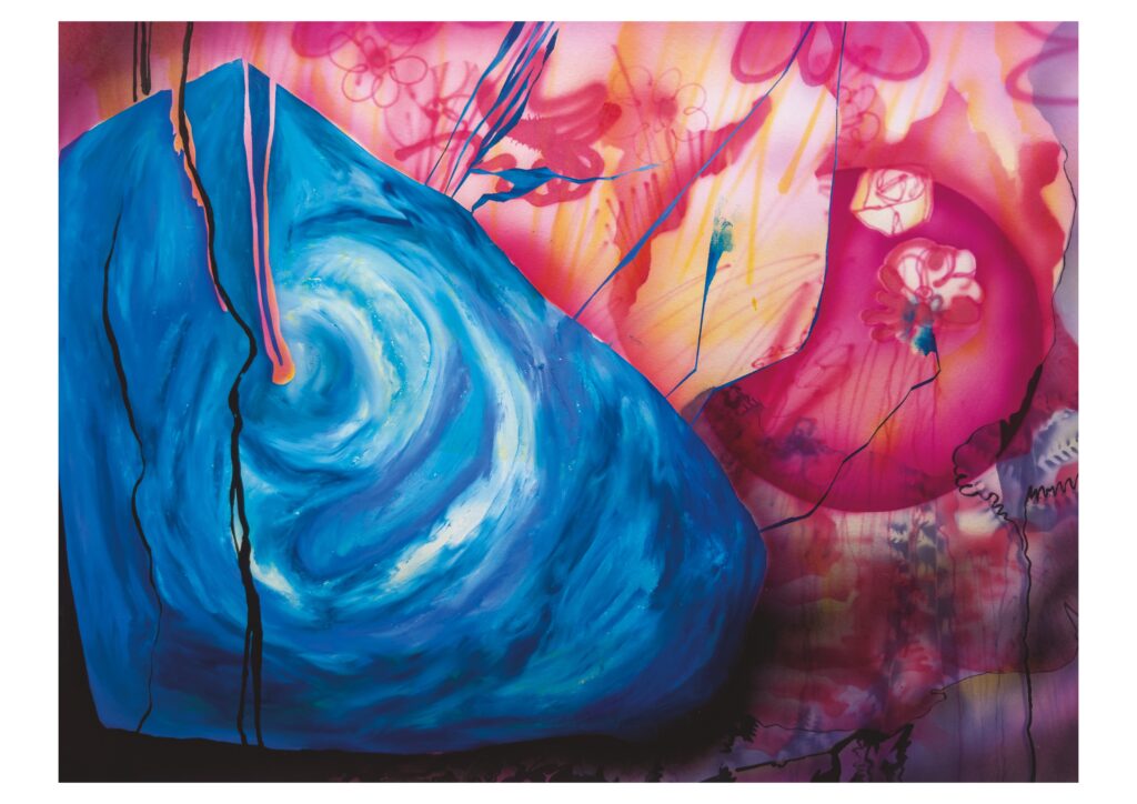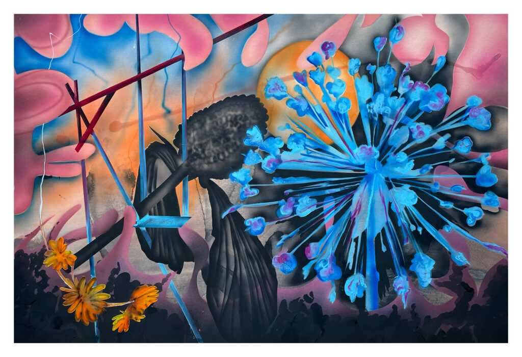 Oil pastel, oil stick, airbrush, spray paint, acrylics and ink on paper