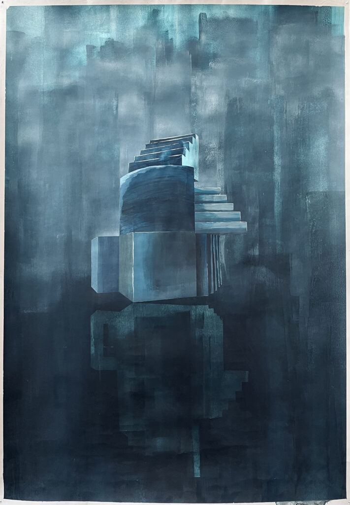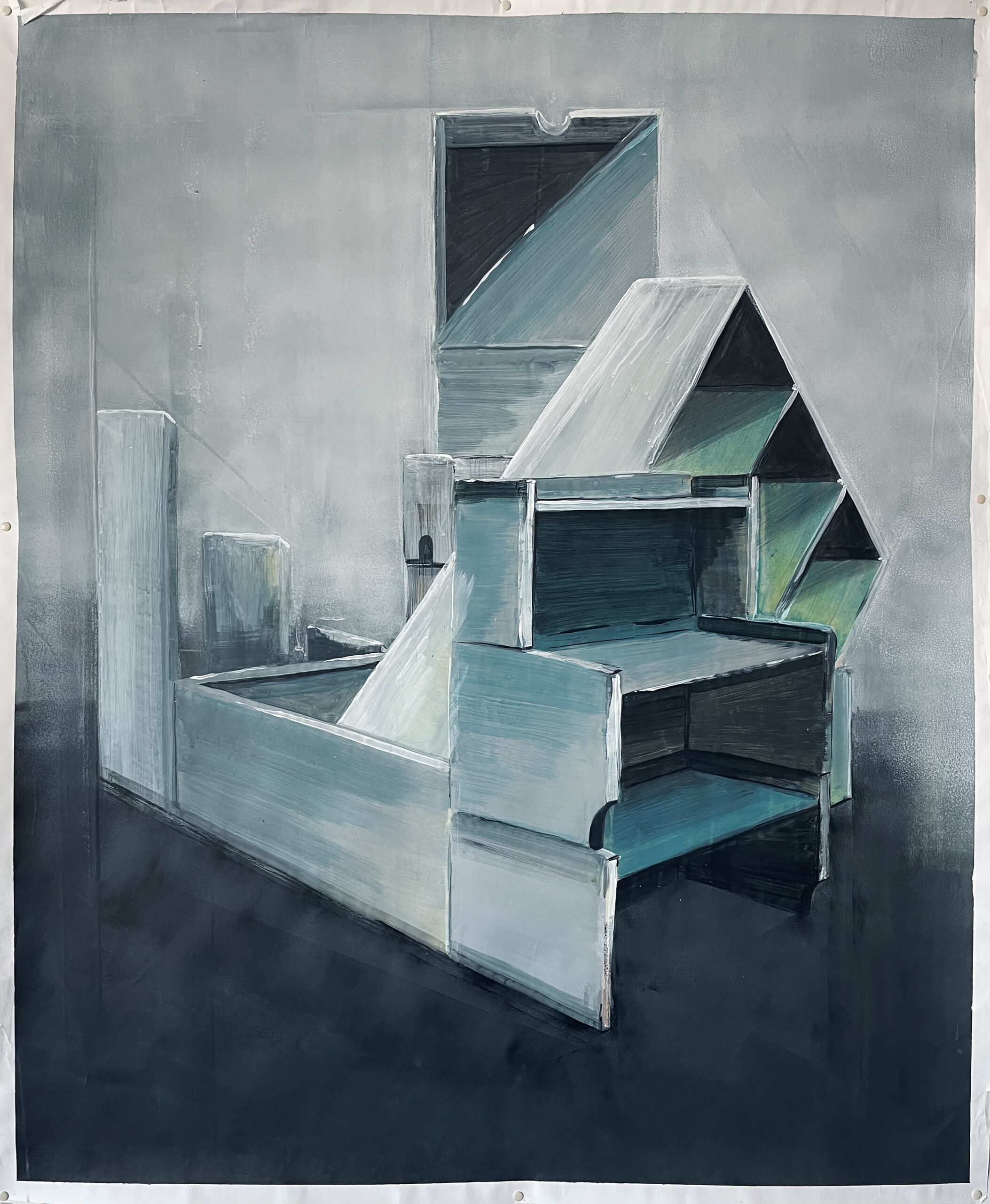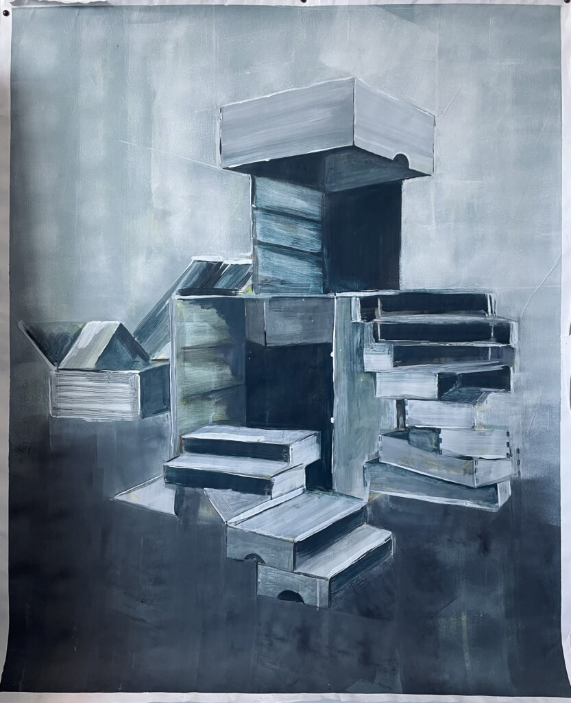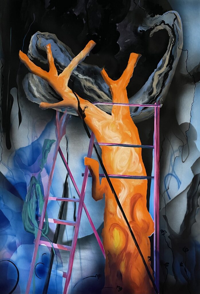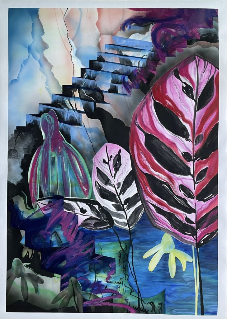 Oil pastel, oil stick, airbrush, spray paint, acrylics and ink on paper